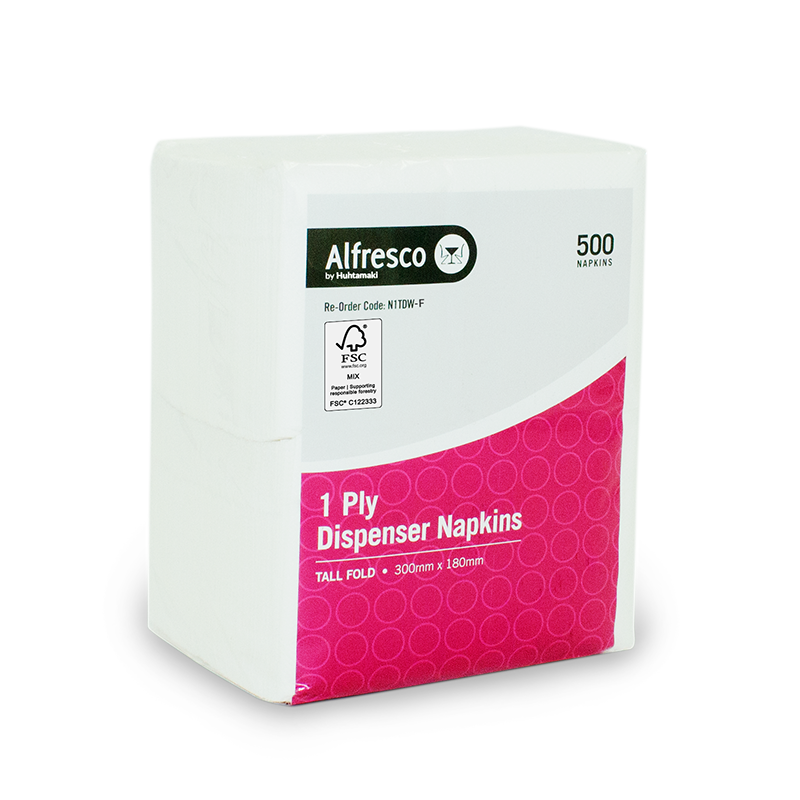 Our Alfresco by Huhtamaki 1 Ply White Tall Fold Dispenser Napkins are FSC® certified and sustainably sourced.