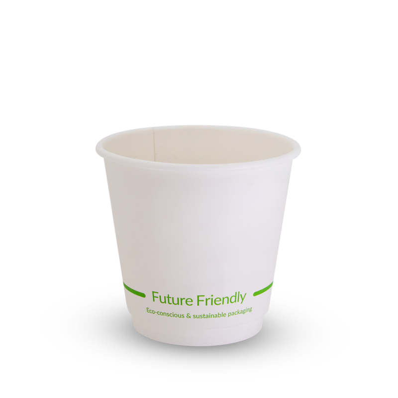 Lined with PLA, a renewable and sustainable resource alternative to regular plastic lining, our Future Friendly white hot Cup are certified commercially compostable to AS 4736 in industrial facilities where these exist. Available in 8oz, 12oz and 16oz in double wall and single wall.